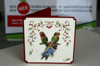 Give a gift on behalf of The Dutch Parrot Foundation or buy a nice toy for your birdAre you looking for a unique gift? A truly unique eye-catcher? See the jewelry, dream catchers and toys listed below. All our jewelry, dream catchers and toys are handmade and as such truly unique! The prices listed do not include shipping. You can order by sending an e-mail to treasurer@dutchparrotfoundation.org. You can enlarge the photos by clicking the picture. The dream catchers are made with real parrot feathers. Would you like us to use the feathers of your parrot or parakeet for a very special gift? Check out our 'Dream Catcher Black'. This dream catcher wants to make your dreams come true! For more information send an email to treasurer@dutchparrotfoundation.org. Unique Parrots and parakeets greeting cards Would you like to send someone a very special card? Check out our range of greeting cards - click here Special jewelry and dream catchers Would you like to order a dream catcher or jewelry? click here to go directly to the jewelry and dream catchers. Fun toys Would you like to order fun toys for your parrot? click here to go directly to the toys. Thimbles made especially for Parrot Foundation Would you like to order these special thimbles? click here to go directly to the thimbles.